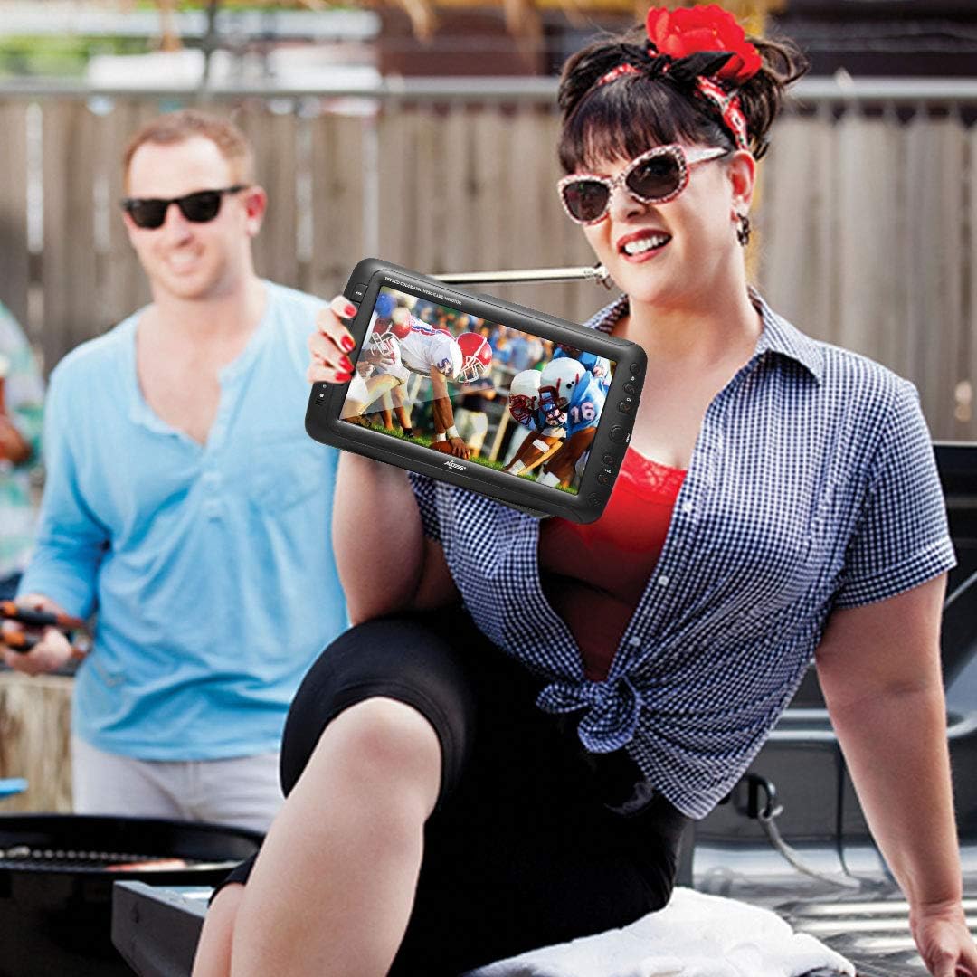 Axess Portable TV 9" Battery Powered Widescreen LCD Small TV TV1703-9 with ATSC Digital Tuner 2 Antennas, USB/SD Card & Headphone Inputs, AV Inputs & Full Func. Remote. Mini TV for Car, RV, Outdoor