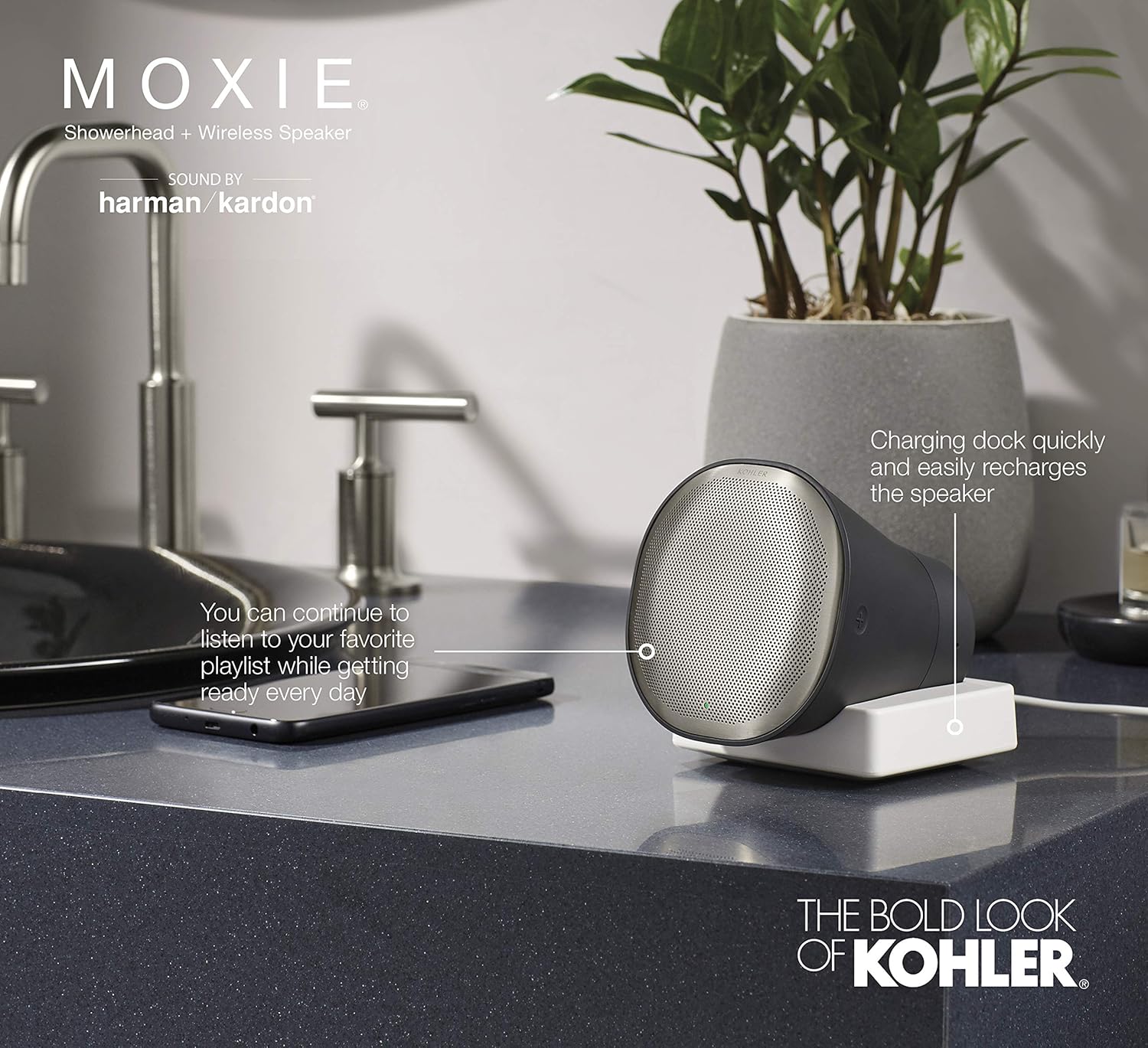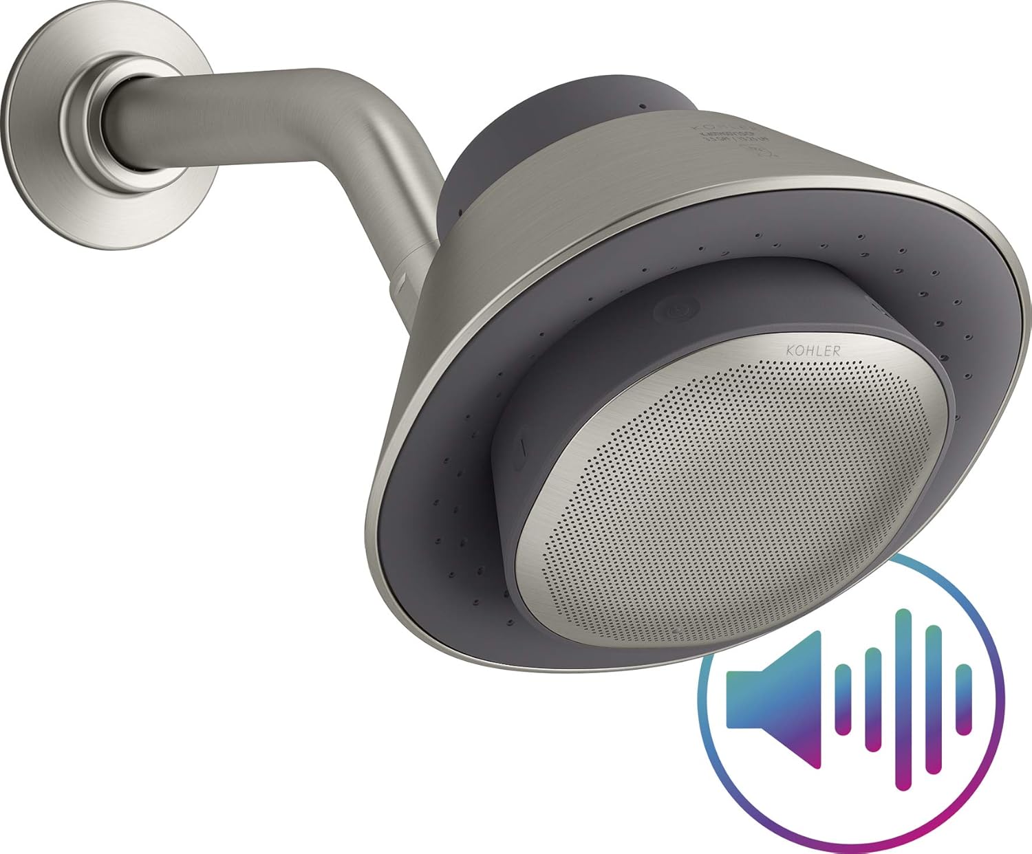 KOHLER MOXIE BLUETOOTH SHOWERHEAD, SHOWER SPEAKER, WATERPROOF SPEAKER, SHOWER RADIO, RECHARGEABLE SPEAKER, PORTABLE SPEAKER, 1.75 GPM, K-28238-GKE-BN, VIBRANT BRUSHED NICKEL